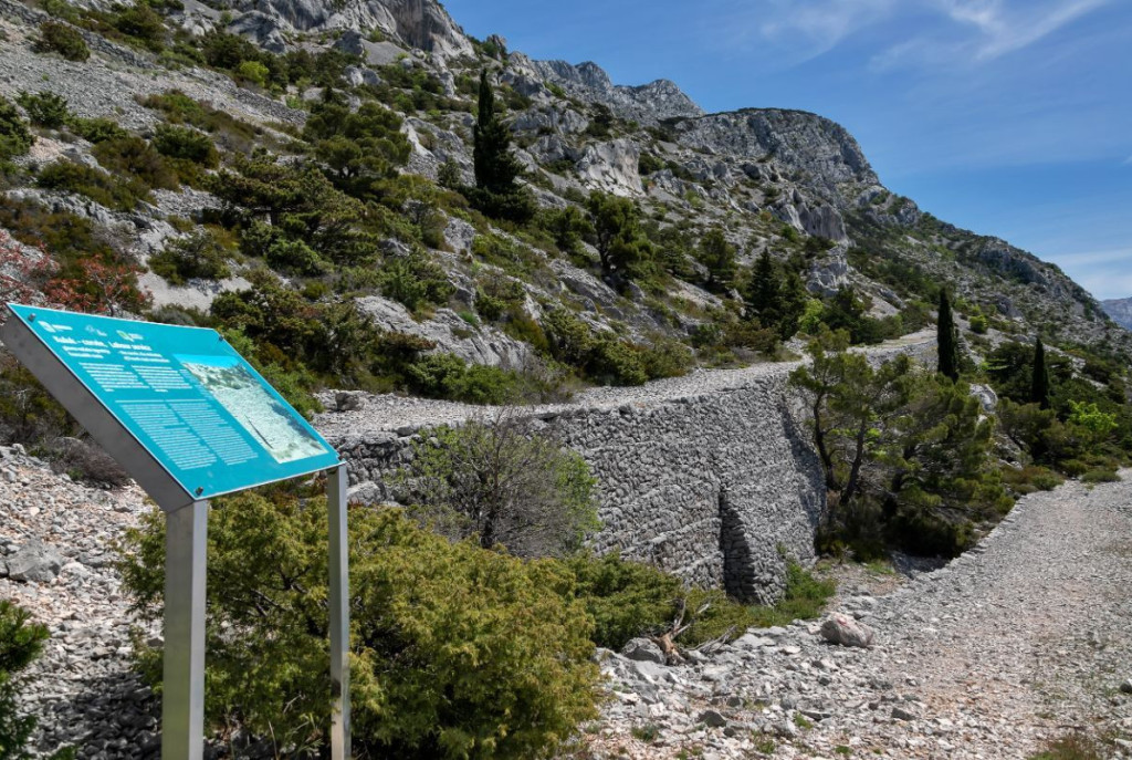 The Tourist Board of Brela recognized the importance of Napoleon's road, so they designed and arranged an educational trail with ten interpretive panels containing content interesting to hikers, excursionists, and lovers of past times. Although it is only a little over one kilometre of road (1.3 km), its importance is still great. Most of the road sections should be renovated and work is underway, but these are demanding projects, as there is no access to mechanization. However, for raising awareness of the importance of cultural heritage, three workshops on drystone wall construction were held on the road. The workshops are always held in cooperation with expert leaders of the "Dragodid" association and aim to teach drystone wall construction techniques. It is worth noting that the preservation of drystone walls and the technique of their construction have been included in the UNESCO List of Intangible Cultural Heritage of Humanity.