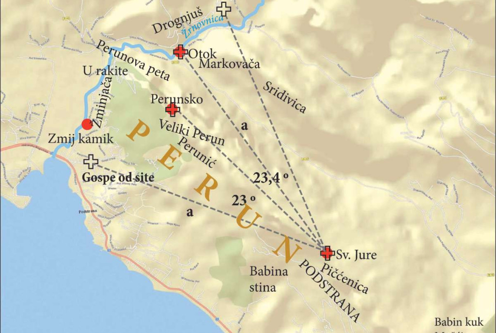 Foto: Položaj praslavenskih svetišta u žrnovačko-podstranskom prostoru; iz knjige Kulturni genom dr. A. Pleterskog