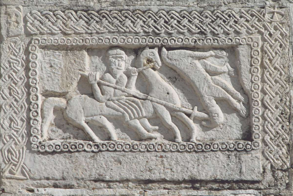Foto: Reljef na pročelju župne crkve u Žrnovnici s prikazom 'božanskog boja' između Peruna i Velesa