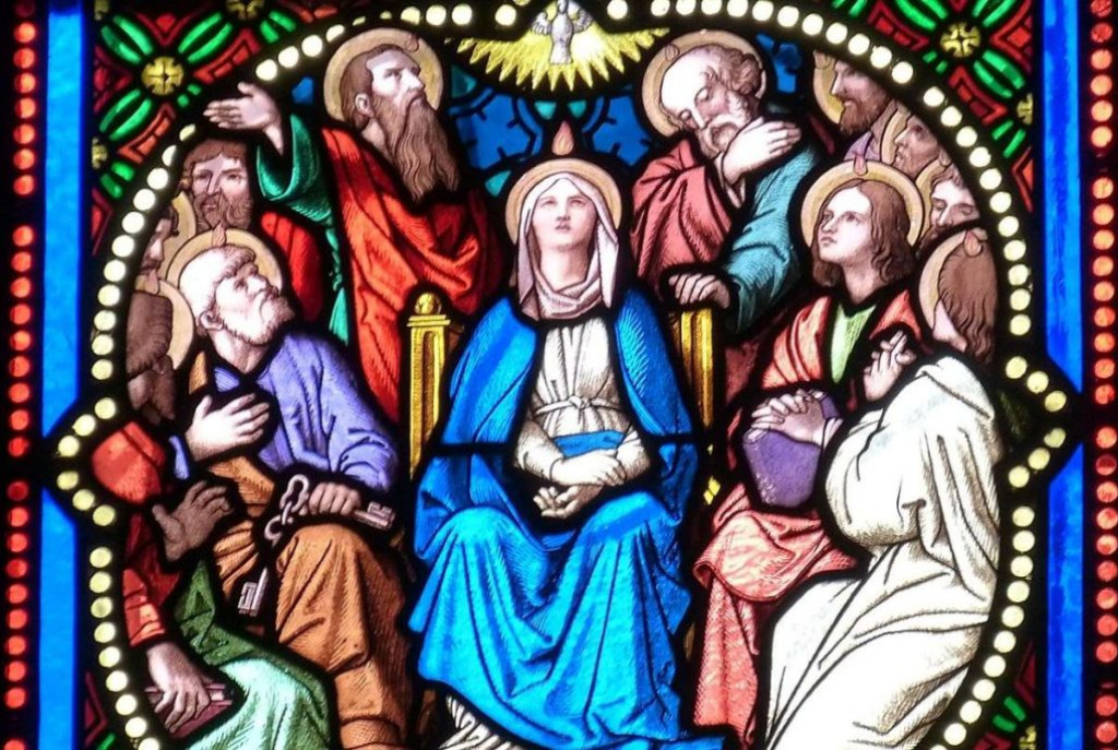 Od blagdana Uzašašća Crkva se nalazi u stanju iščekivanja. Bojažljivi apostoli, ponukani Isusovim obećanjem, nalaze se u stanju molitve. Obećanje Duha Svetoga daje im nadu da ima izlaza iz te strahotne situacije u kojoj su se našli. Jedina utjeha im je zajedništvo, Marija ih okuplja oko sebe...